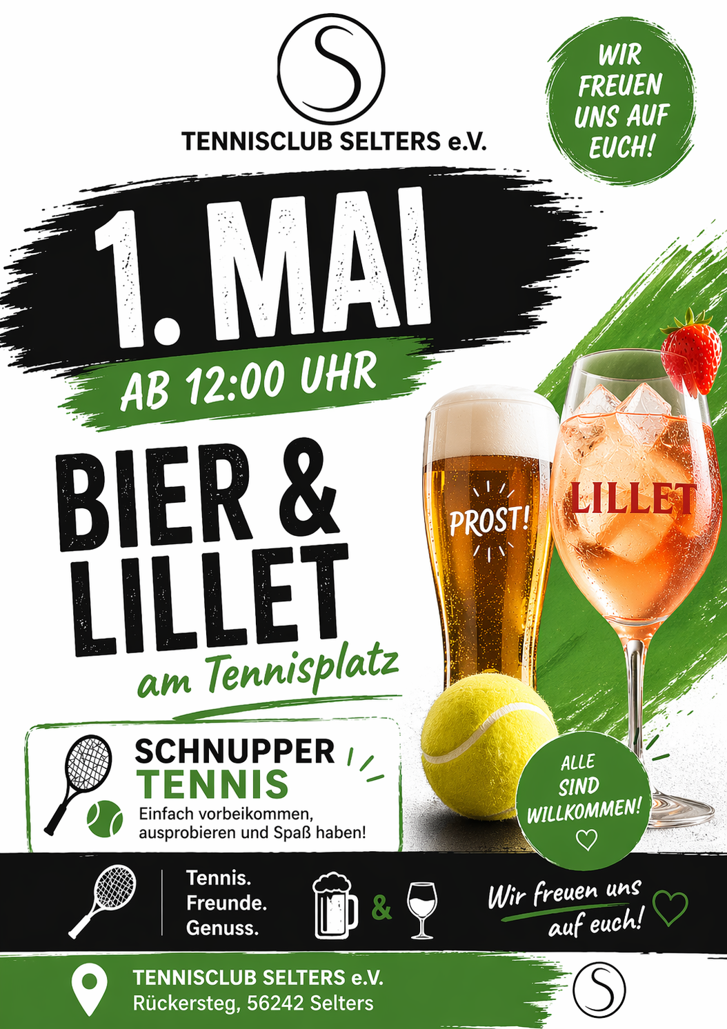 Am 1. Mai ab 12:00 Uhr laden wir euch herzlich auf unsere Tennisanlage ein!